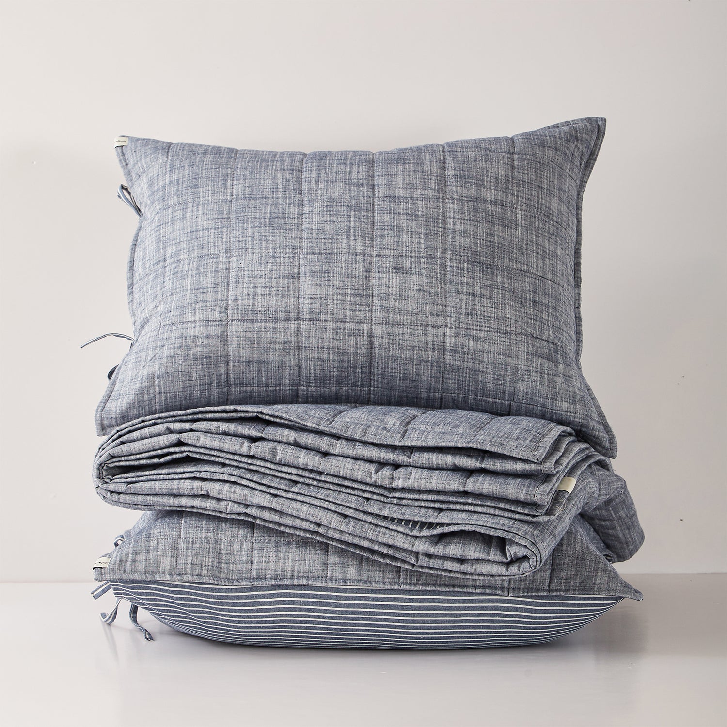 Softpage Quilt set 100% Washed Cotton Denim blue Classic Stripe Bed Spreads