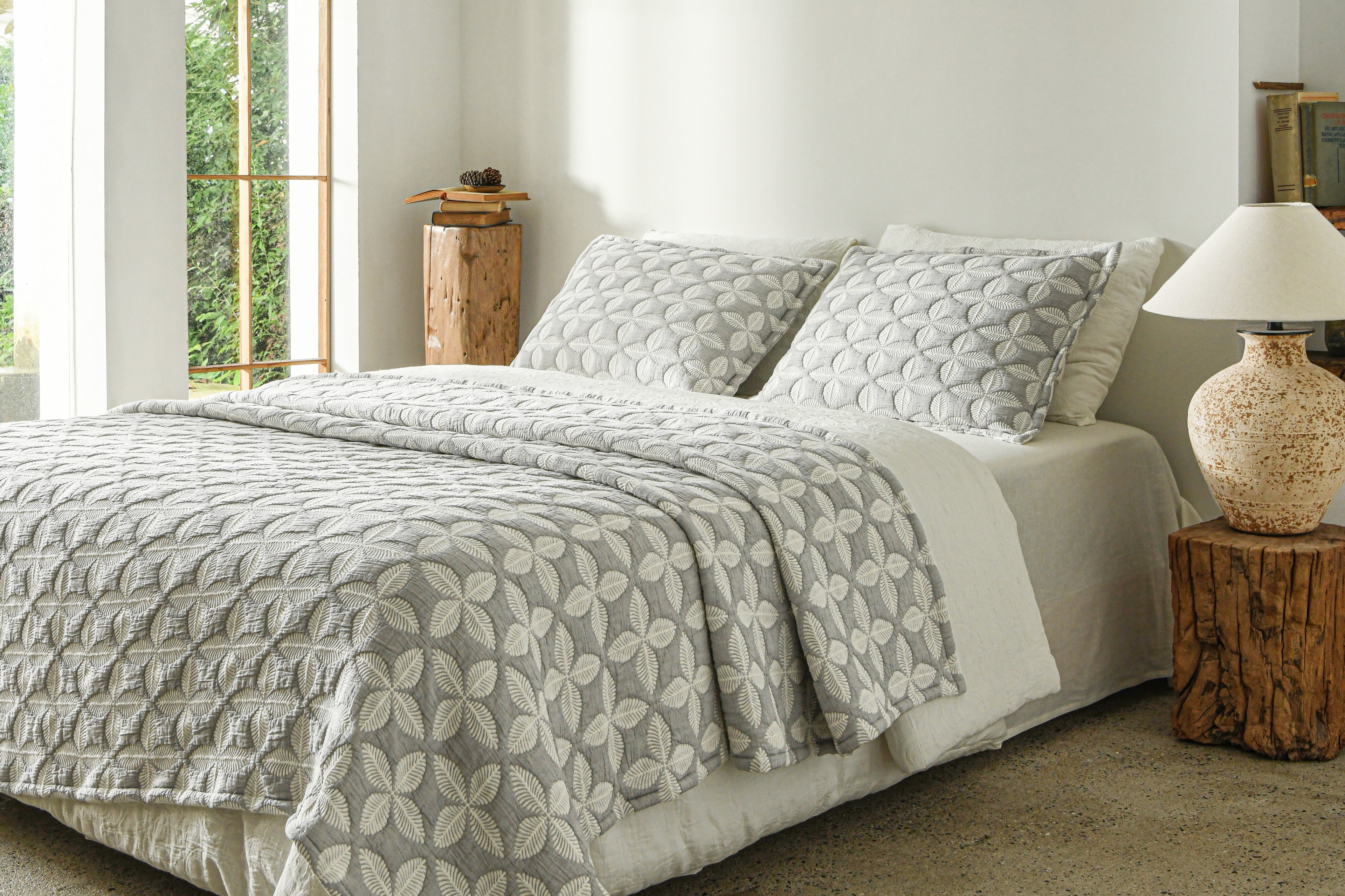 Softpage Quilt set Cotton Linen Melange White Classic Gingam Bed Spreads