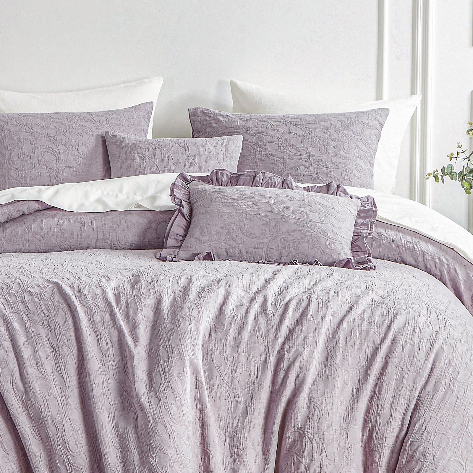 Cotton Queen Comforter Set, Mauve Vintage Farmhouse Comforters Queen Size Pre Washed, Jacquard Comforter Set Bedding 3 Pieces (1 Comforter, 2 Pillowshams)