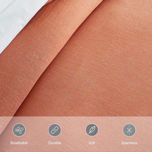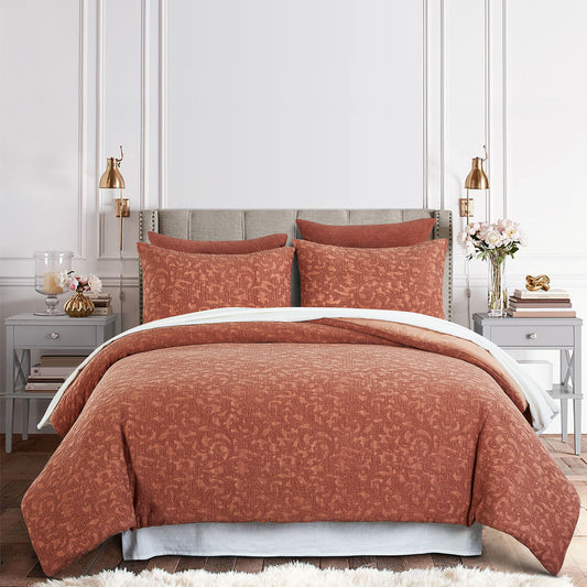 Comforter Set Burnt Orange 100% Washed Cotton Jacquard 3 pcs set