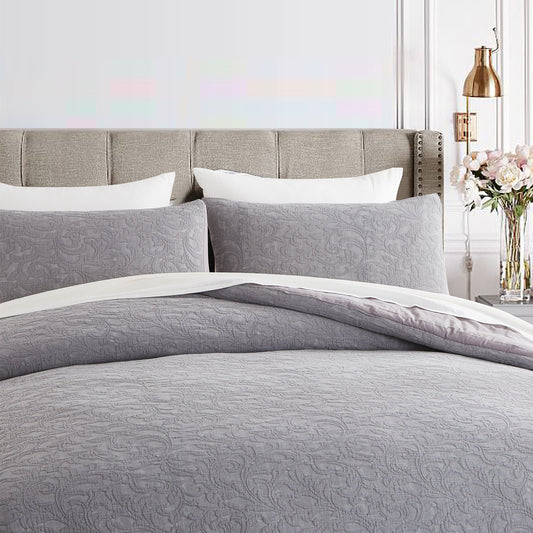 Comforter Set Gray 100% Cotton Stone Washed Jacquard 3 pcs set