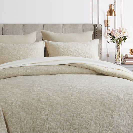 Comforter Set Beige 100% Washed Cotton Jacquard 3 pcs set