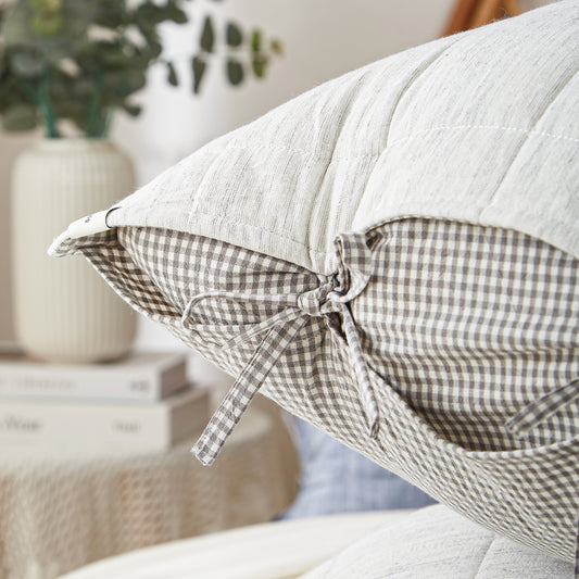 Softpage Quilt set Cotton Linen Melange White Classic Gingam Bed Spreads